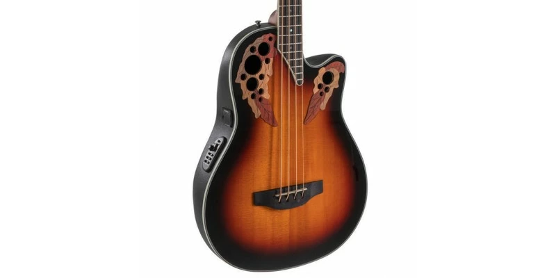 The Ovation Celebrity Elite Plus 4-String Electro-Acoustic Bass guitar is here presented in a New England Burst finish with solid Spruce top. This CEB44-1N model features Ovationโs Mid Depth Lyrachord roundback body, which provides a resonant and consistent foundation for the Spruce. Ovationโs OP4BT preamp and Slimline pickup transform this acoustic bass guitar into an outstanding stage instrument.