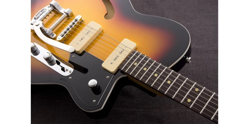 The Reverend Club King 290 with Bigsby in 3-Tone Burst is a lot of guitar at a very reasonable price. Great playability and tone with some unique looks really make it stand out.