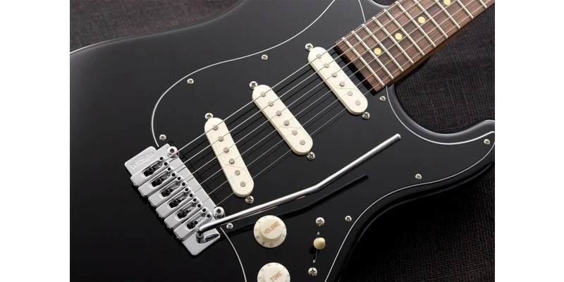 The Wilkinson WVS50K Tremolo fitted to the Reverend Gil Parris GPS includes saddles that lock to the baseplate, making it as stable as a hardtail bridge. Other features include adjustable arm swing tension, and a push-in/no freeplay arm. Combined with the boneite nut and pin-lock tuners, it stays in tune even under aggressive whammy action.