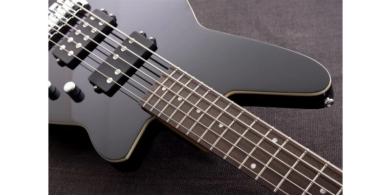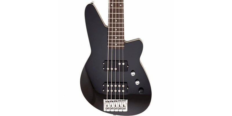 The build quality on this 5 string bass guitar is pretty amazing. Especially at such a competitive price. The Reverend Mercalli 5 bass guitar comes with an offset double cutaway body. Crafted from Korina it features a gloss Midnight Black finish. A Roasted Maple and walnut neck has been bolted on to the body using six bolts. The medium oval profile is a joy to play. It has been fitted with a Rosewood fretboard with a twelve inch radius.