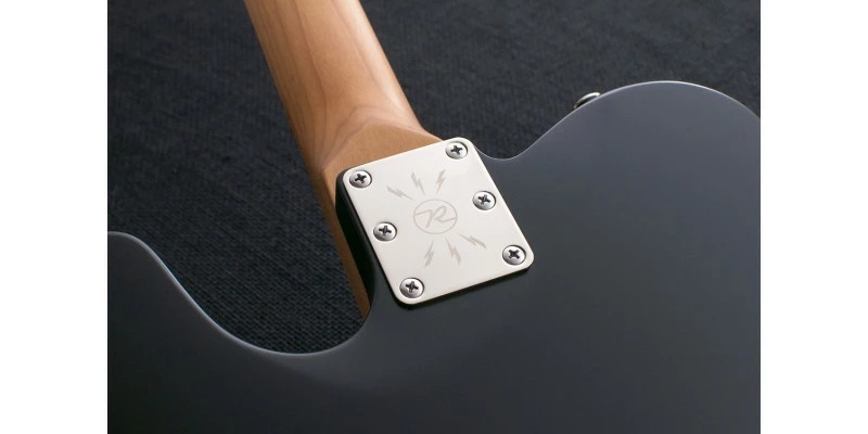 So, this might look like an ordinary solid body electric guitar but don’t be fooled! The Reverend Pete Anderson Eastsider S in Satin Black features a chambered korina body. Korina is a very acoustically resonant wood. Usually found on boutique instruments. To find it on a guitar of this price is fantastic. Bolted on to the body is a stunning roasted Maple neck. This features a roasted Maple fretboard with a compound radius. Ranging from ten to fourteen inches it offers comfort at the bottom and low action at the top. Again, another surprising feature for such a keenly priced instrument.