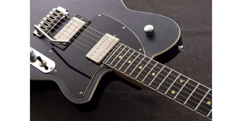 Bolted onto the body is Reverend’s now-famous, ultra-playable Roasted Maple neck. Reverend really pioneered the introduction of Roasted Maple outside the high-end, boutique market, and many other brands are now following suit. This neck not only feels stunning, but is more resistant to temperature and humidity, improving tuning stability and sustain. The Reeves Gabrels Signature now comes with a 12” radius bound Ebony fretboard, with gloss black headstock face. Reverend have created a very comfortable body and neck with the Reeves Gabrels guitar.