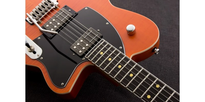 This guitar comes with some pretty amazing hardware. The most standout of which are the Railhammer pickups. New signature RG Neck and Bridge. They offer a tight bottom end and a fat high end which drives hard and cuts through the mix like a knife, even with heavy overdrive. The Reeves Reeves Gabrels Rock Orange also comes with a push/pull phase switch. This greatly boosts the versatility of this instrument. Also worthy of mention is Reverendβs Bass Contour control. This passive bass roll-off is great for tightening up the low end, or re-voicing the pickups. It can make a humbucker sound like a single-coil! Variable pickup voicing at your fingertips.
