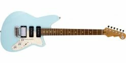 The Reverend Six Gun HPP – here presented in Chronic Blue with Rosewood fretboard and Roasted Maple neck – is the latest iteration of Reverendโs classic Six Gun, now packing an HA5 Humbucker in the bridge, combined with two 9A5 P90โs in the middle and neck. The HSS pickup layout is widely regarded as among the most versatile out there – true to Reverend form, the Six Gun HPP riffs off this adaptability, adding more balance, improved mid-range punch, and tons of growl from that Alnico Humbucker.