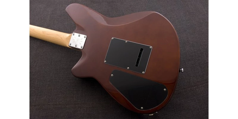 It also features a load of upgrades that Reverend have been adding to their guitars over the past few years: engraved neck and jack plates, triple string tree, upgraded Polyester capacitors and a Boneite nut. The excellent Wilkinson WVS50 IIK Tremolo features another new Joe Naylor invention, the Vari-Claw. The Vari-Claw allows you to easily switch between 3 springs in the middle hooks of the claw for a firm feel, or 2 springs on the outside recessed hooks of the claw for a soft feel, with little or no adjustment to the claw itself. You can really go wild with the trem and tuning is kept incredibly stable. This is thanks in part to the locking tuners and slippery Boneite nut.