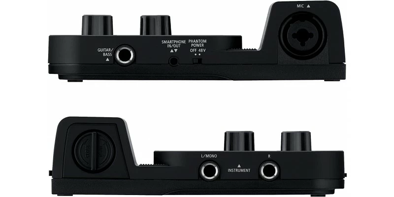 - Combo jack supports standard mics with XLR or ¼-inch plugs; 48 V phantom power available via XLR