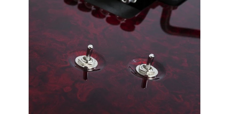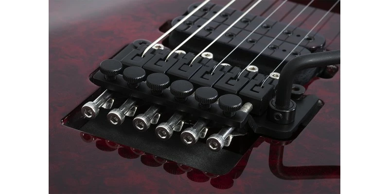 The Schecter Avenger FR S Apocalypse is here presented in a transparent Red Reign finish with Burl Maple top and Ebony fretboard. Packing a Schecter USA Apocalypse VI bridge pickup and Sustainiac neck pickup, this guitar is capable of thunderous tone and endless sustain. A Floyd Rose 1500 Series tremolo facilitates the most extreme whammy bar techniques, while the 24 X-Jumbo Stainless Steel frets will stand up to years of abuse.