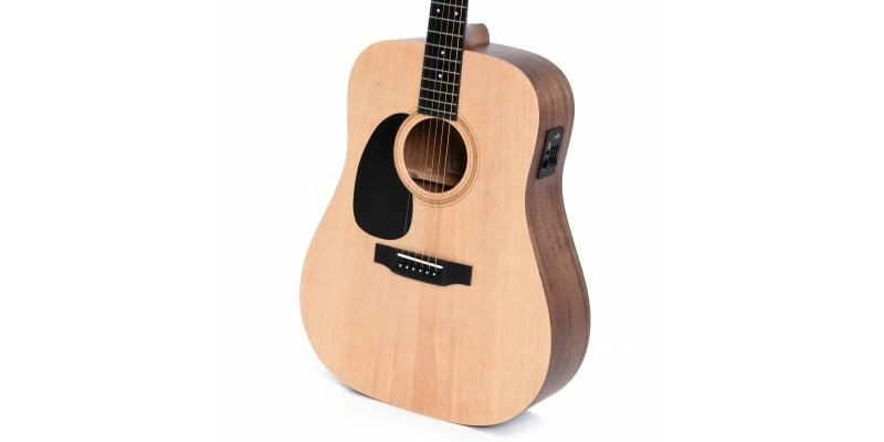The Sigma DMEL is a full body dreadnought acoustic guitar. It features a solid sitka spruce top paired with Mahogany back and sides. What’s more, the DMEL is fitted with a bone nut and saddle. This gives this guitar a superb acoustic tone that will quite easily shame bigger brands costing several times as much.
