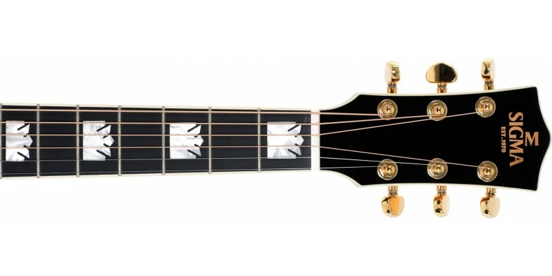 The Sigma GJA-SG200 marries drop dead gorgeous looks with a very impressive specification. Sigma guitars continue to amaze us with their impeccable build quality and superb tone. Why pay over ยฃ3000 when you can have this classic Jumbo from Sigma. The acoustic tone from this guitar is immediately impressive from the first strum. The jumbo body features a Solid Sitka Spruce top paired to a striking Flame Maple back and sides. You can feel the bass response resonating through the body along with lovely crisp highs thanks in part to a proper bone nut and saddle. Sigma have really made the GJASG200 look the part with full binding around the body, neck and headstock. Gold Grover machine heads and mother of pearl inlays add a real touch of class. The moustache bridge and ornate tortoiseshell pickguard complete the look.