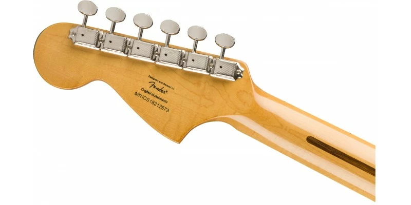 The Classic Vibe β70s Jaguar turns up the volume on retro style and produces incredible tone courtesy of its dual Fender-Designed alnico single coil pickups. Small hands will appreciate the short 24β scale length and slim, comfortable βCβ-shaped neck profile with an easy-playing 9.5β-radius fingerboard and narrow-tall frets. This Jaguar is faithful to the original with a vintage-style tremolo system for expressive string bending effects and floating bridge with barrel saddles. This throwback Squier model also features 1970s inspired headstock markings, nickel-plated hardware and a slick vintage-tinted gloss neck finish for an old-school aesthetic vibe.
