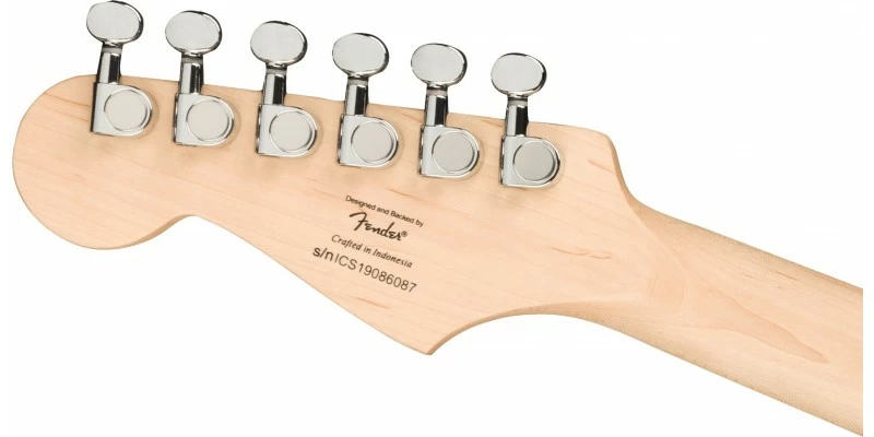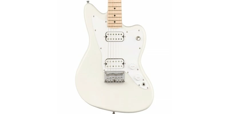 The Squier Mini Jazzmaster® HH is the perfect companion for players seeking a reduced-size instrument with classic styling and familiar Fender® tone. Highlights include a thin and lightweight body, an easy-to-play “C”-shaped neck profile, dual Squier humbucking pickups with 3-way switching for sonic variety, and a hardtail bridge for solid tuning stability.