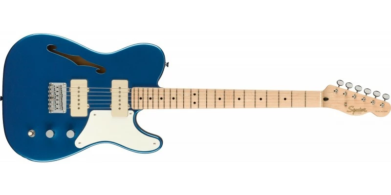 The Squier Paranormal Cabronita Telecaster Thinline is now available in Lake Placid Blue with 1-Ply Parchment pickguard. Featuring a semi-hollow body and twin Jazzmaster Single-Coil pickups, the Thinline Cabronita produces fat tone with a characteristic growl when cranked. This guitar looks outstanding; a clean single-ply pickguard and perfectly complementary colour scheme help it really stand out. The Cabronita Thinline Tele is part of Squierโs new Paranormal Series, transcending the expected for players intent on transporting their playing into a new dimension.