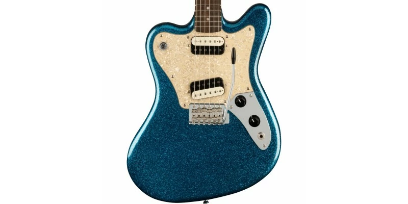 The Squier Paranormal Super-Sonic is now available in this stunning Blue Sparkle finish! With standout looks – sporting both a reverse body AND headstock – and a 24โ scale, the Super-Sonic is both extremely fast and very easy to play. Twin Atomic Humbuckers provide seismic output, while a synchronised tremolo system allows a wide range of string bending techniques. The Squier SuperSonic is part of Squierโs new Paranormal Series, transcending the expected for players intent on transporting their playing into a new dimension.