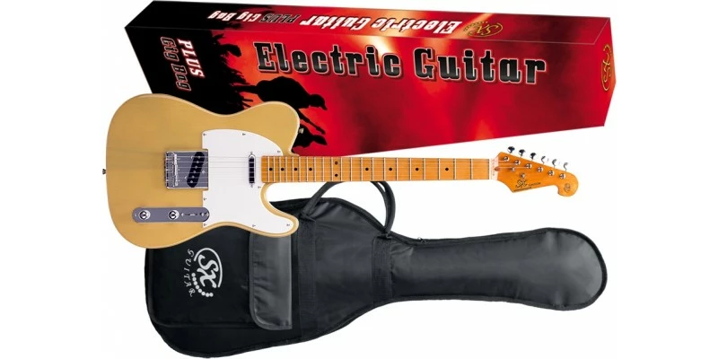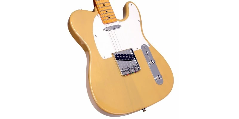 The SX Telecaster-Style Electric Guitar has a really classic look with its Butterscotch Blonde body and white pickguard, with chrome hardware, but it isnโt all about the looks. The solid basswood body ensures that the guitar is very resonant, improving its tone. Mounted to the body are two single-coil tele-style pickups, which provide everything from clean to overdriven tones. The three-way selector allow you to switch between the bridge and neck pickups, or, in the middle position, to blend the two. Quality strings from DโAddario have been fitted, ensuring the guitar stays in tune and sounds its best. The tinted Maple neck is finished to a very high standard and has a fairly chucky classic 50s style profile.