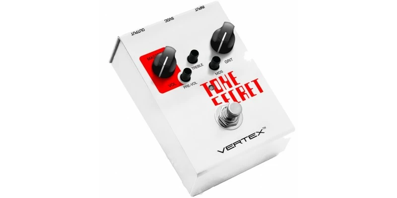 The Vertex Tone Secret (TS) is the answer to the love/hate relationship countless guitarists have with a particular screaming green overdrive pedal that originated in late 1970โs Japan. The Tone Secret recreates the sonic DNA of the most iconic users of the green screamer heard on countless studio recordings and live performances without the need for a cranked mid-scooped amplifier to run the pedal into. The TS only utilizes 50% of the gain found in a traditional green OD pedal; however, the added pre-overdrive and post overdrive controls allow you to tweak the OD characteristics to match any amplifier and simulate amp break-up without dime-ing the โDRIVEโ knob on your pedal. Additionally, weโve added individual controls for treble and mid-range frequencies, along with our โGRITโ control to dial in the ratio of your ampโs natural break-up in tandem with the overdrive produced by the Tone Secret. If youโre looking for a screaming OD pedal that nails the classic and contemporary sounds heard on your favorite records, look no further than the Tone Secret.