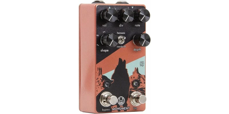 Inspired by the beautifully jagged, red-sand desert landscape of Monument Valley, the Monument Tremolo is both a harmonic, and standard tremolo that produces a rich, luscious, warm pulsating modulation capable of peaks and valleys as smooth or as jagged as the real ones that our dear mother nature created long ago.