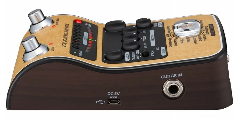 The Zoom AC-2 features a high-quality preamp which boosts your signal and helps restore your true acoustic sound. Add its natural-sounding reverb to increase your acousticβs depth and width, and round out your desired tone with easy 3-band EQ adjustments.